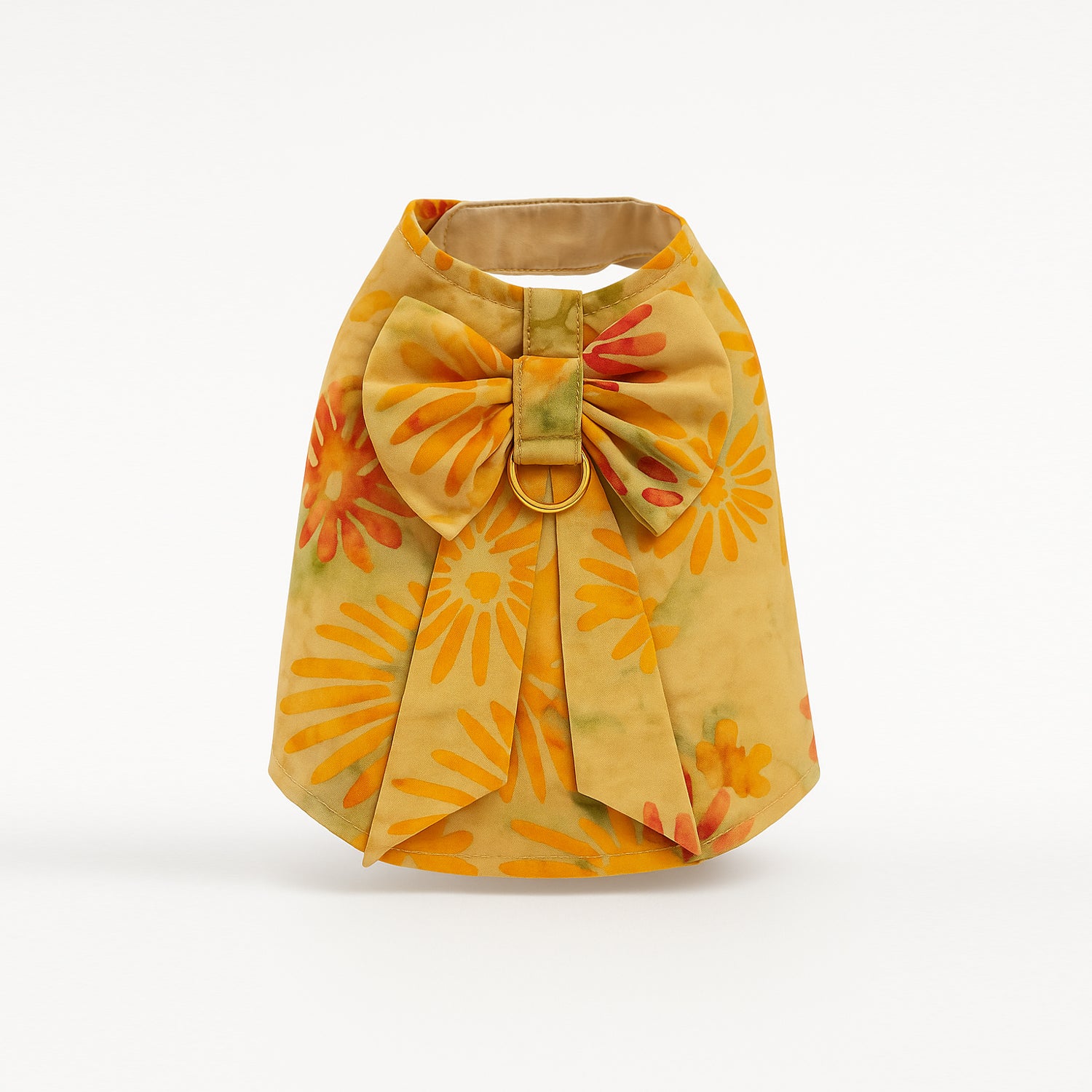 Make your pup look absolutely charming with this exclusive floral dress. Designed with a delicate, vibrant floral print in shades of red, yellow, orange and green, this dress is perfect for special occasions or stylish everyday walks.